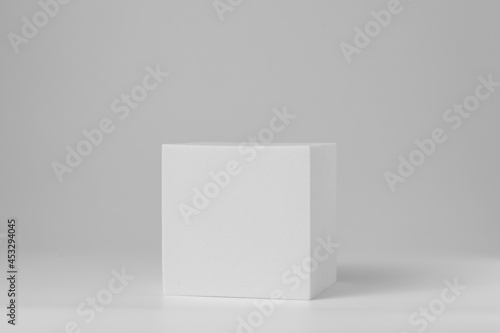 Geometry shaped podium for mock up presentation in gray color and minimalist style