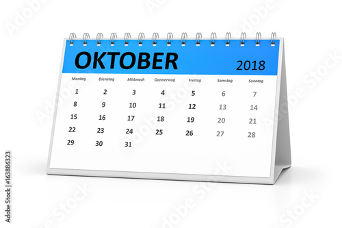german language table calendar 2018 october