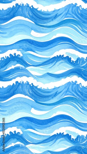 Ge"Seamless ocean wave wallpaper in varying shades of blue, hand-painted watercolor style, calming marine background, fluid abstract texture, high-resolution design"nerated image