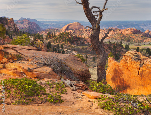 Gesteinsformationen am Lower Kolob Plateau, Kiefer, Zion National Park, Utah, USA