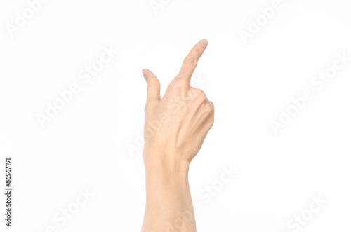 Gestures topic: human hand gestures showing first-person view isolated on white background in studio