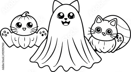 Ghosts with Cat Vector, Cute Halloween Ghosts Vector, Cat Lover Ghost Vector, Halloween Cat Mom Vector, Spooky Season Cats Vector, Cat Person Vector, Spooky Vibe