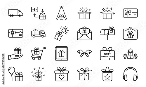 Gift and Delivery Line Icons – Minimal Vector Set for Online Shopping, Gifting, Subscriptions, and Celebration Themes