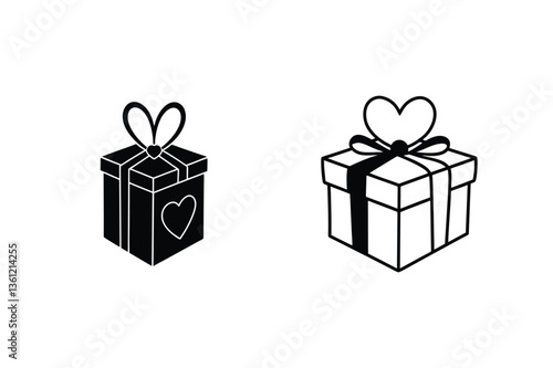Gift Box Icons Black, White, Heart, Ribbon, Present