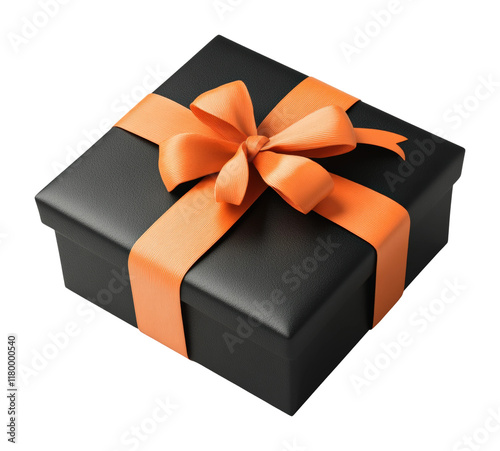 Gift box with orange ribbon icon high fidelity design digital minimalist style close-up view celebratory concept isolated on transparent background png