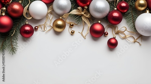 Gifts and Decorations: A Joyful Christmas Scene. Light Background with empty copy space. Generative AI