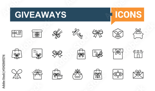 Gifts icon. Contain linear symbols ribbon, surprise, celebration, birthday, celebrate, event, package and more. Minimalist icons collection. Gift Box icon set. Pixel perfect. Editable stroke.