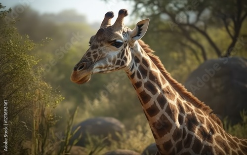 Giraffe Portrait in the African Savanna