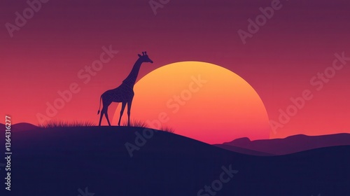 Giraffe Silhouette Sunset Africa Savanna Landscape.