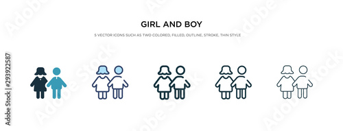 girl and boy icon in different style vector illustration. two colored and black girl and boy vector icons designed in filled, outline, line stroke style can be used for web, mobile, ui