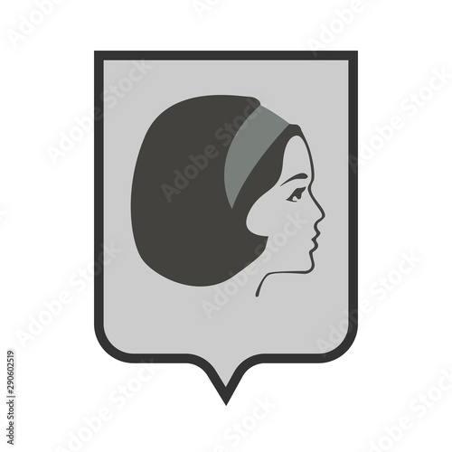 girl in a scarf logo face on a shield. Vector graphics.