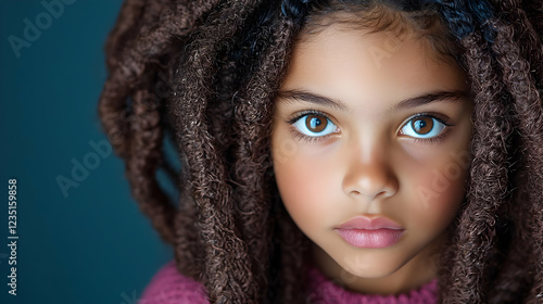 Girl with dreadlocks, portrait, studio, dark background, child model