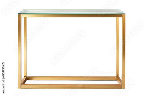 Glamorous Modern Console Table: Gold Metal Frame and Glass Top Isolated On White Background