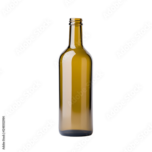 Glass bottle with a clean white background, showcasing its transparent design and smooth surface.