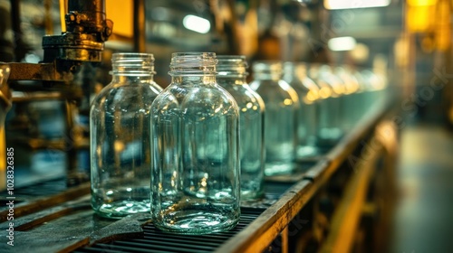 Glass Bottles on a Production Line in a Factory Setting During Daylight Hours. Generative AI