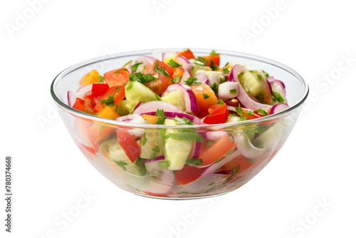 Glass Bowl of Salad on White Table. On a White or Clear Surface PNG Transparent Background.