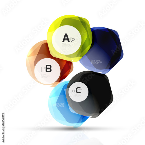 Glass color hexagons. Glossy plastic hexagon design with text