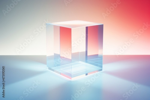 Glass geometric figures prisms with light diffraction of spectrum colors and complex reflection with trendy light on a white background.
