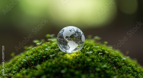 Glass globe resting on lush green moss
