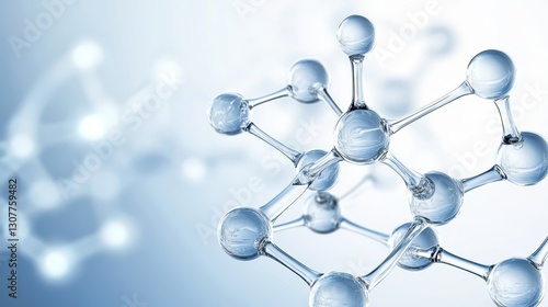 Glass molecule structure rotating on blurred background with bokeh effect representing scientific innovation and discovery in the fields of chemistry, biology, and medicine