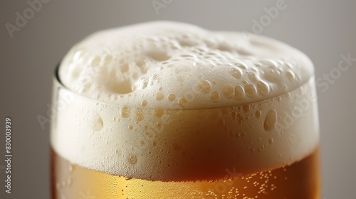 Glass of beer with a thick, creamy foam head