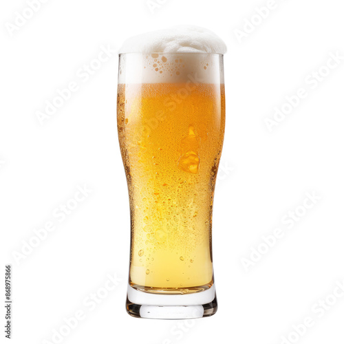 Glass of cold beer with foam isolated on transparent white background, clipping path