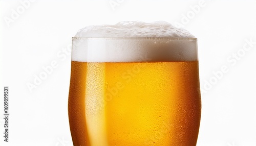 glass of cold beer with foam isolated on white background