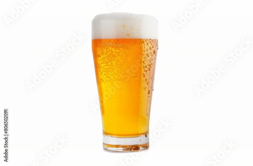 Glass of Cold Beer with Foam. Mockup Isolated on White Background