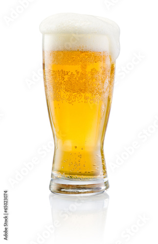 Glass of fresh beer with cap of foam isolated on white backgroun