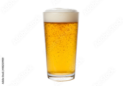 glass of golden beer with bubbles isolated on transparent background Generative Ai.