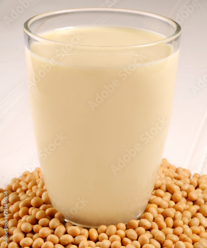 GLASS OF SOYA MILK WITH SOYA BEANS