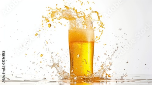 glass of splashing beer isolated on white
