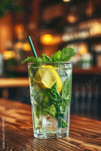 Glass of water with lemon and mint