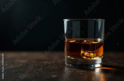 Glass of whiskey on dark background. Drink photo bar restaurant. AI Generative