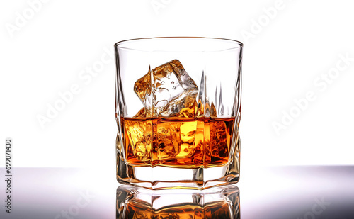 Glass of whiskey with ice cubes on a white background. Isolated