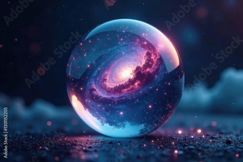 Glass orb filled with swirling galactic clouds, universe, astronomical