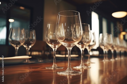 Glasses are on the table in the restaurant