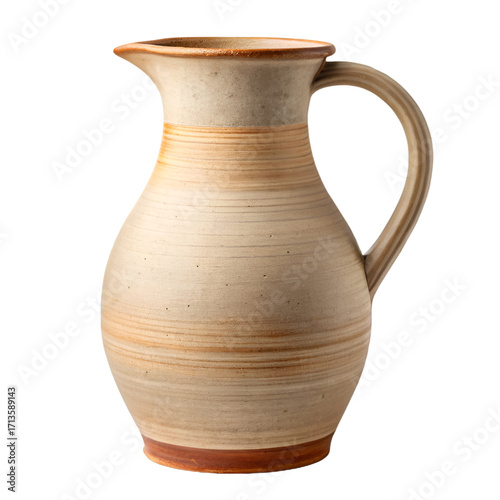 Glazed Ceramic Pitcher with Striped Pattern Isolated on Black pottery