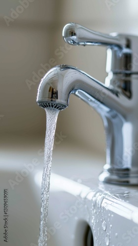 Gleaming Chrome Faucet Dispensing Fresh Water in a Clean and Minimalist Bathroom Setting