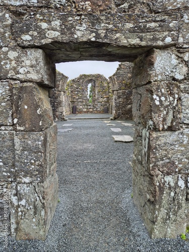 Glendalough, Ireland, in summer. Lush green foliage and ancient monastic remains in the wilderness
