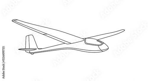 Glider plane outline vector illustration: aviation, soaring, aircraft, transportation, fly on transparent background