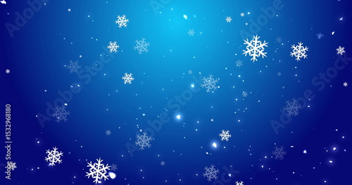 Gliding stylized white snowflakes creating depth in digital winter illustration, with crisp motion