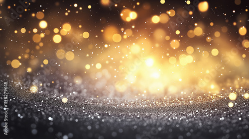Glimmering Gold and Silver Sparkling Bokeh Festive Background. Generative Ai.