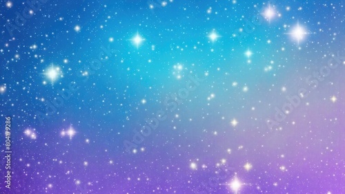 Glittering Cyan, Blue and Purple gradient background with hologram effect and magic lights. fantasy backdrop with fairy sparkles, gold stars, and festive blurs