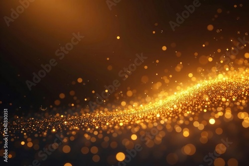 Glittering gold dust suspended in a void with soft light, glow, gold