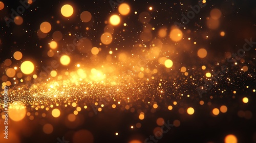 Glittering golden fireworks banner paired with glowing bokeh lights against the dark backdrop