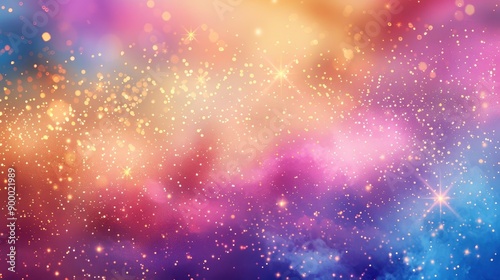 Glittering gradient background with hologram effect and magic lights. Holographic abstract fantasy backdrop with fairy sparkles, gold stars and festive blurs - generative ai