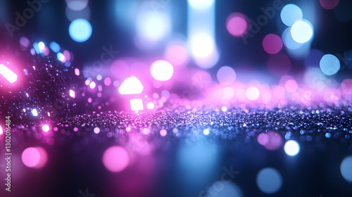 Glittering particles, neon lights, dark background, abstract design, website banner