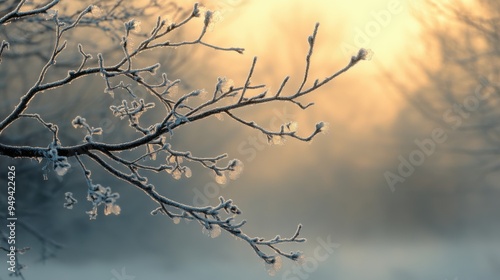 Glittering Winter Splendor - Frost-Adorned Tree Branches in Chilly Morning Light