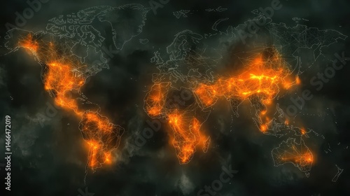 Global blaze conceptual world map representing widespread environmental danger impacting countries territories and ecosystems vulnerability